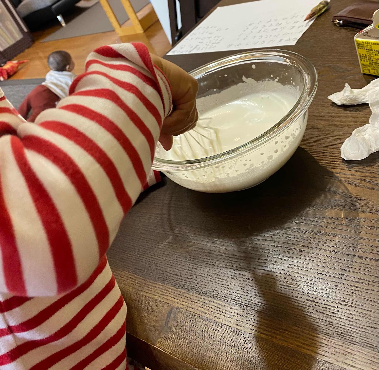 生クリームの泡立てを率先してやりました。
