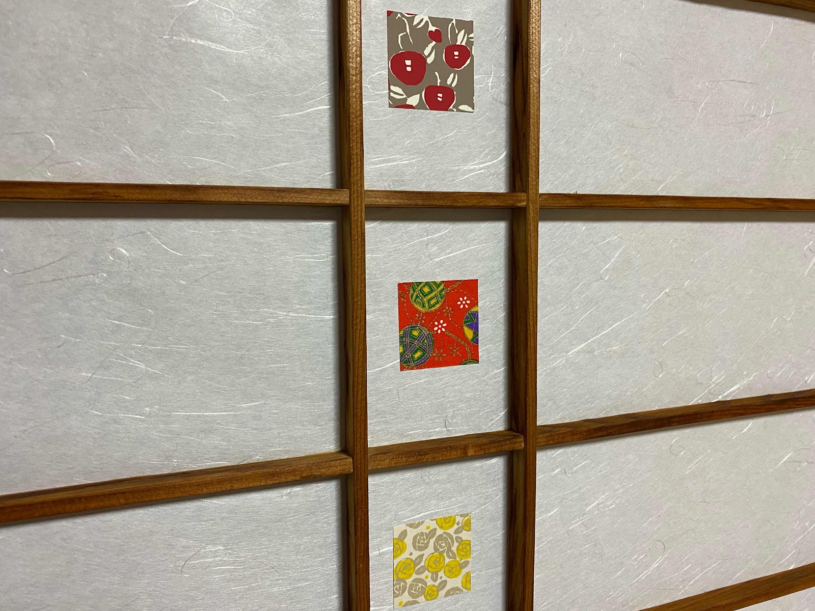 新しい障子紙に貼り直した後、以前夫が買った和紙を貼りました。