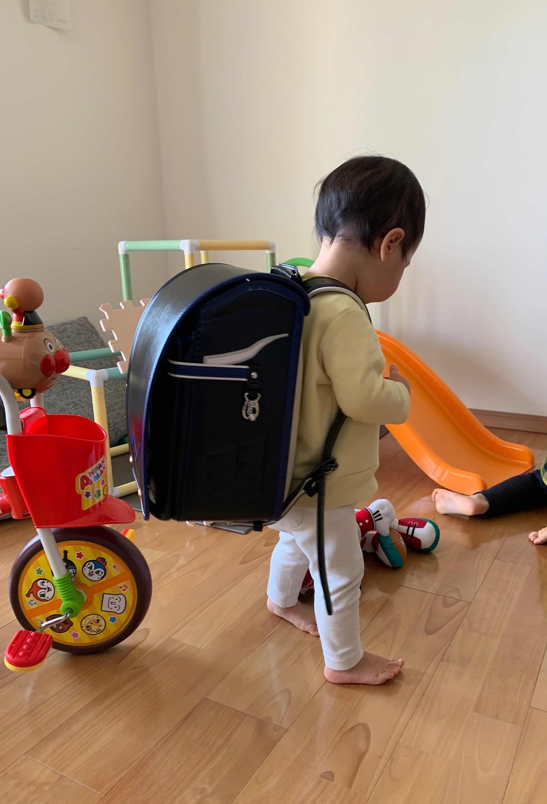 Yのランドセルを背負ってご満悦なRです。