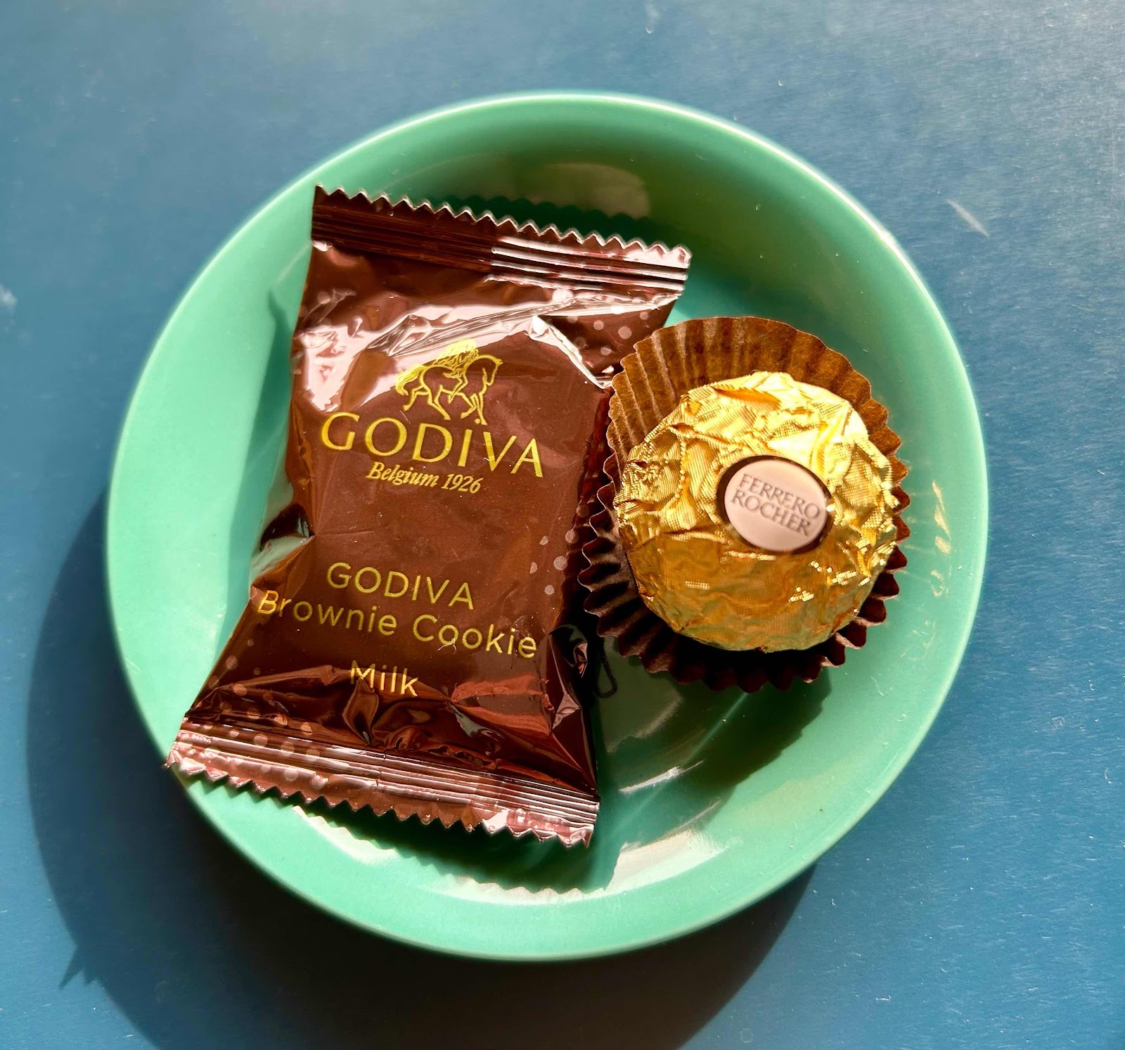 フェレロ ロシェのチョコレートとGODIVAのブラウニークッキーです。