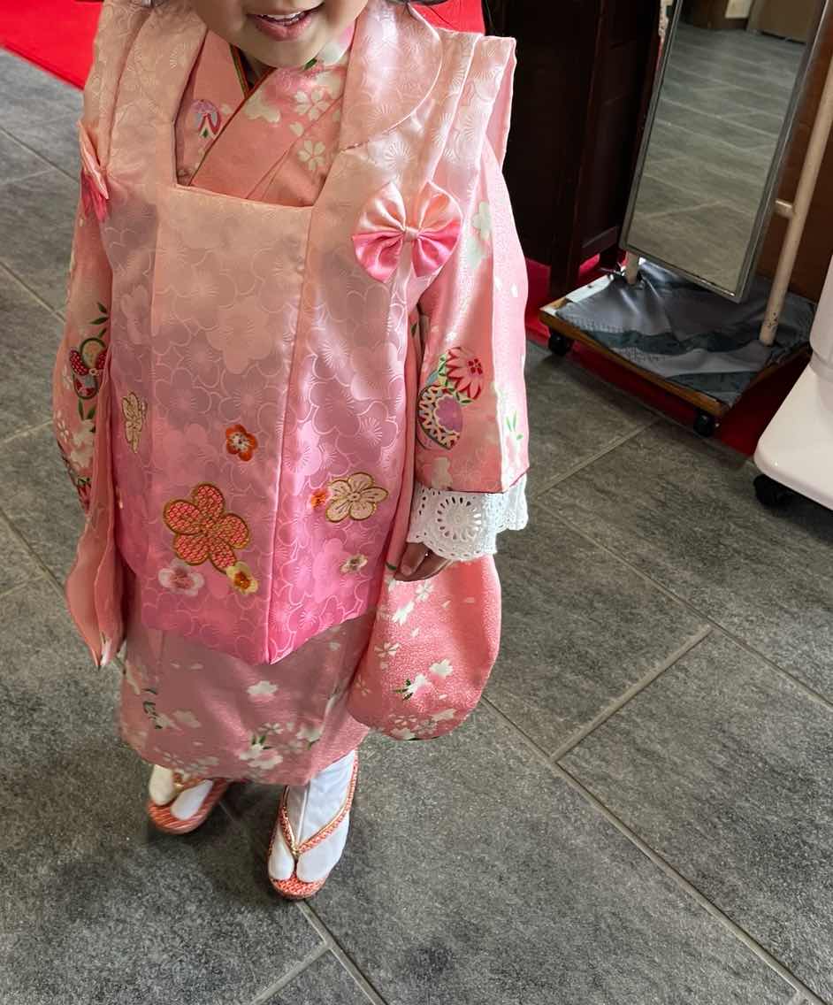 桃の節句に相応しいピンク色の着物です。