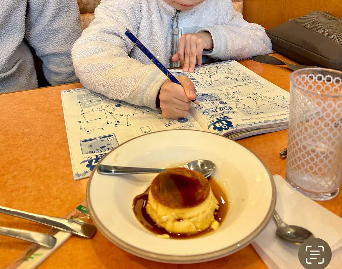 食べ終わると「デザート食べてもいい?」と言いながらプリンを注文しました。