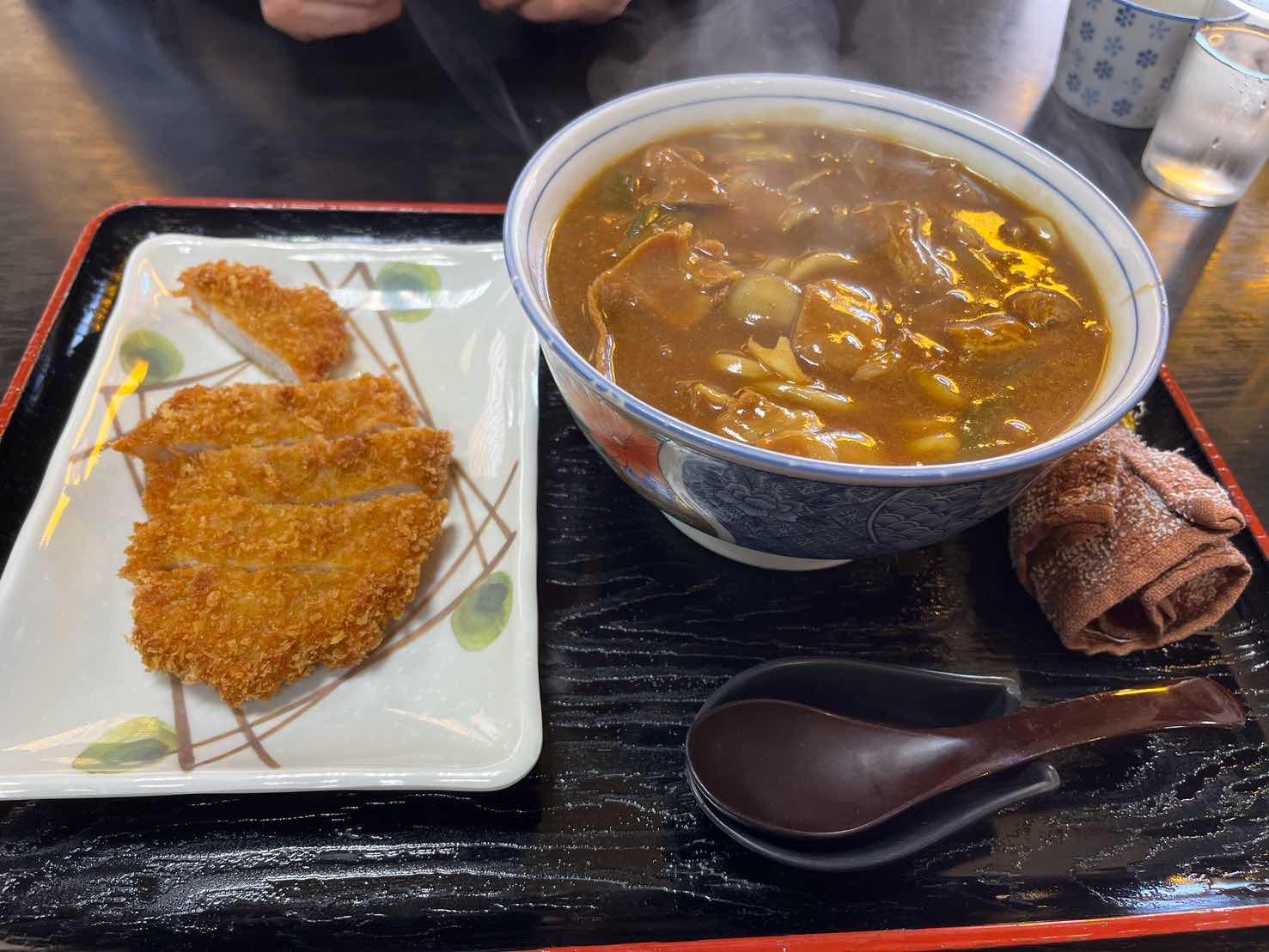 夫はカツカレーうどんを注文しました。