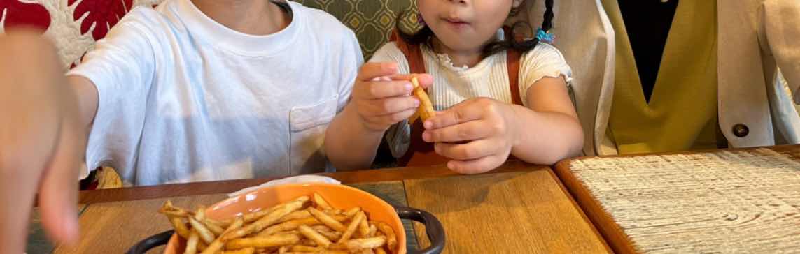 Yや娘たちは、パンケーキを味わっていました。