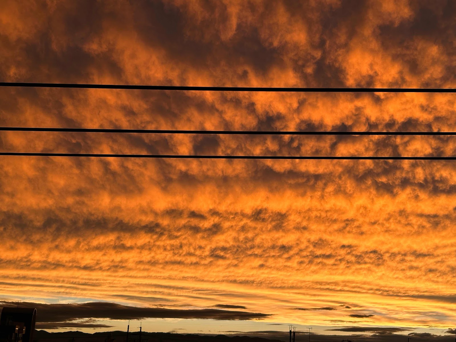 夕食の準備をしていると、窓から赤い夕日が見えたので、ベランダに出てみました。