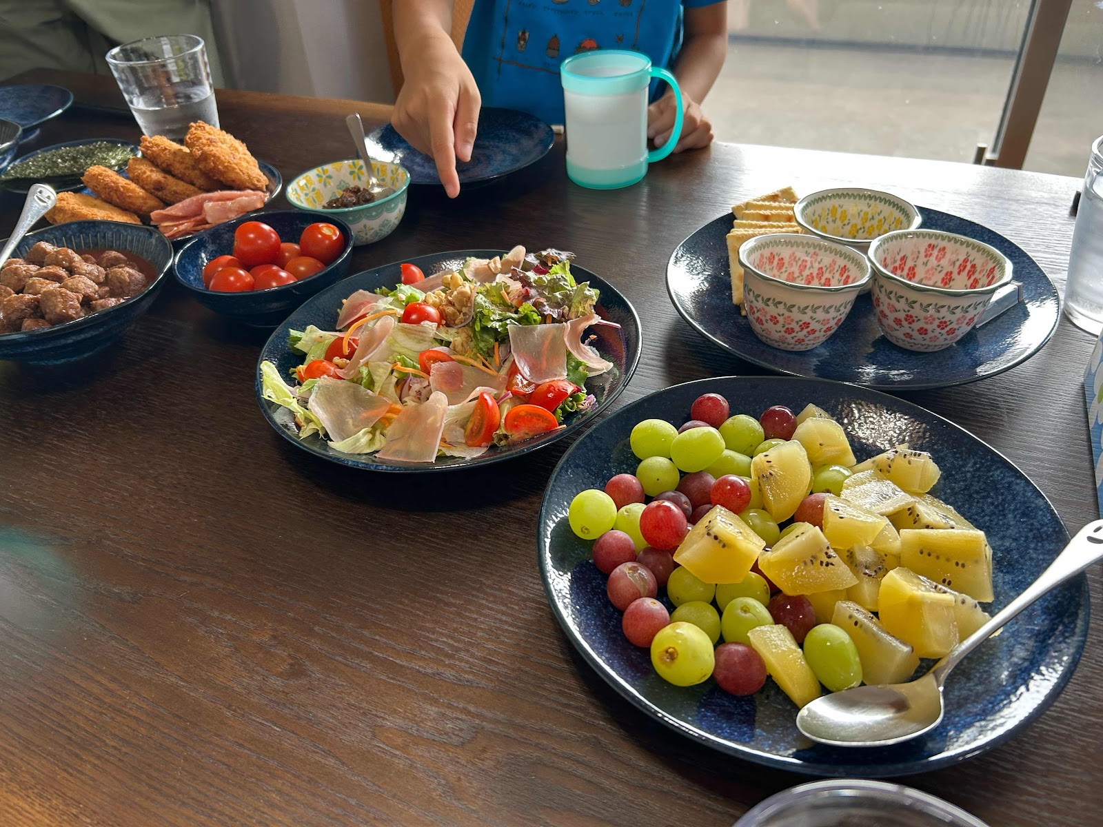 朝早くから買い物に行ってくれて、こんなに豪華で美味しいブュッフェを準備してくれました。
