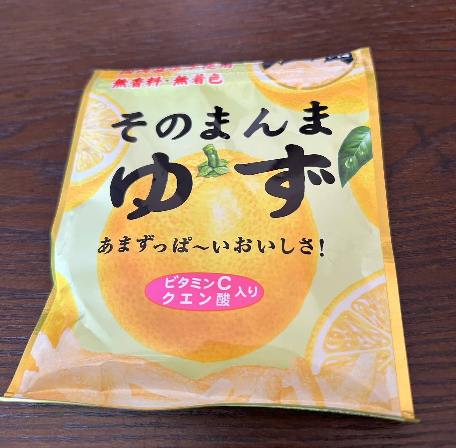 お昼ご飯も食べて、のど飴と私が持っていったそのまんまゆずを食べていました。