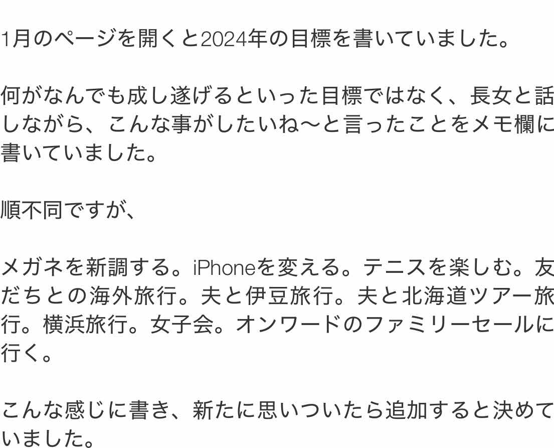 2025年は旅行関係の目標がいくつかと「何でもいいから新しいことに1つチャレンジをする!」を書きました。