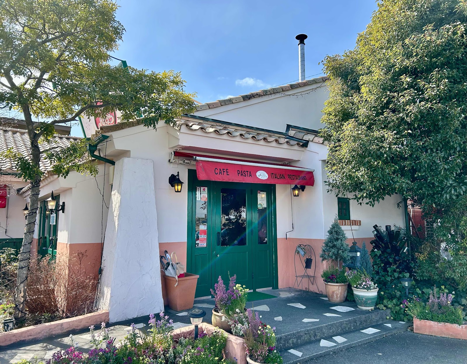 お店の前には季節の花がお出迎えしてくれます。