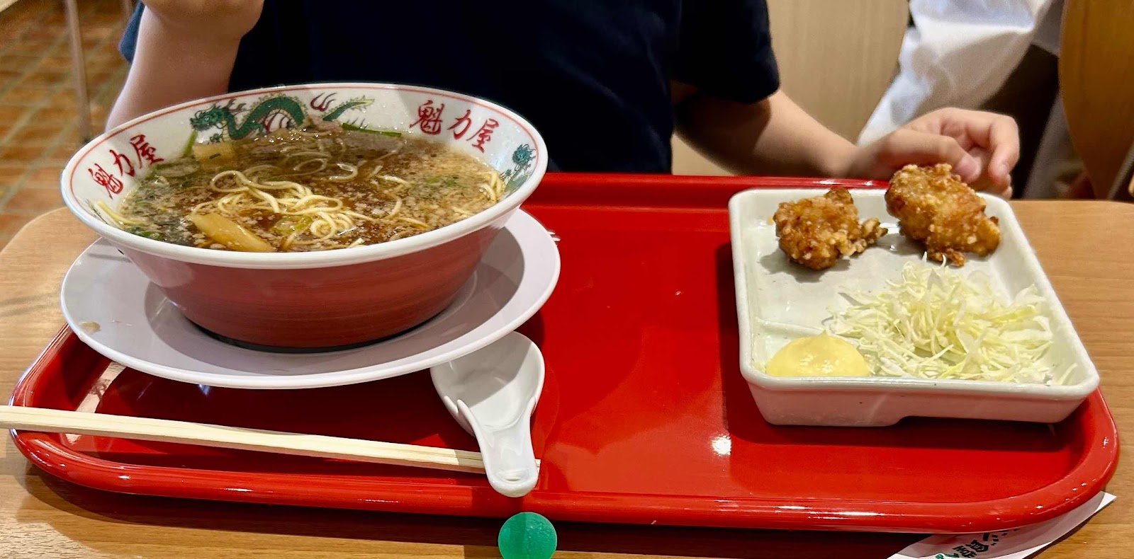 注文を終えてテーブル席で待っていると、Yのラーメンができたようでした。