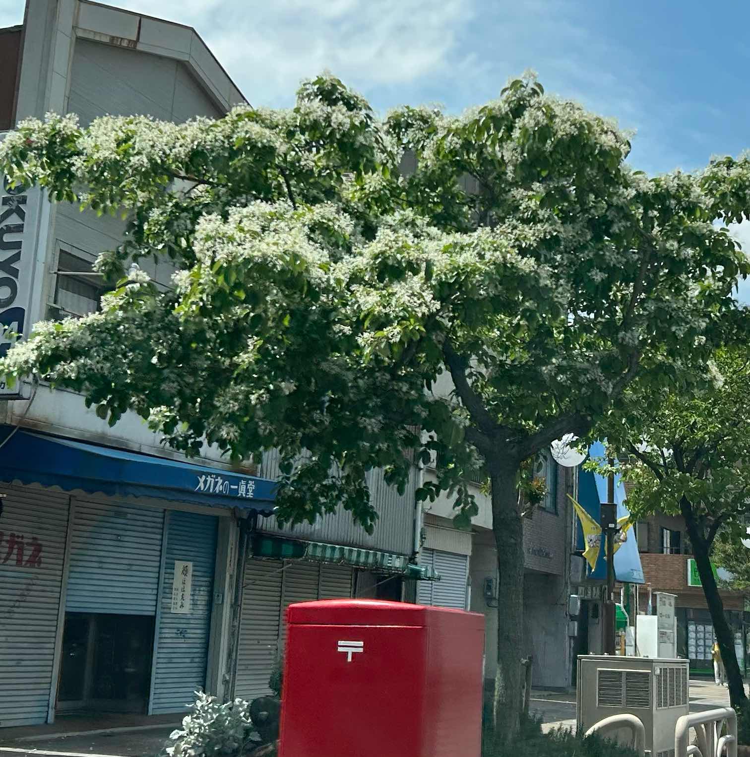 名古屋市に入ると街路樹のなんじゃもんじゃが満開でした。