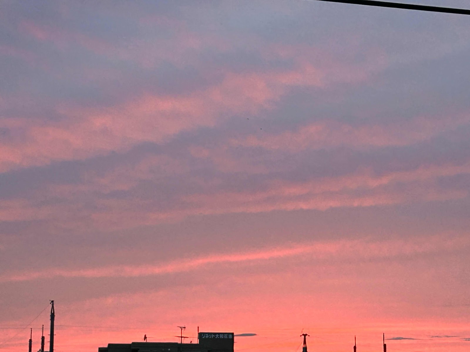 夕方、西の空が茜色に染まっていました。