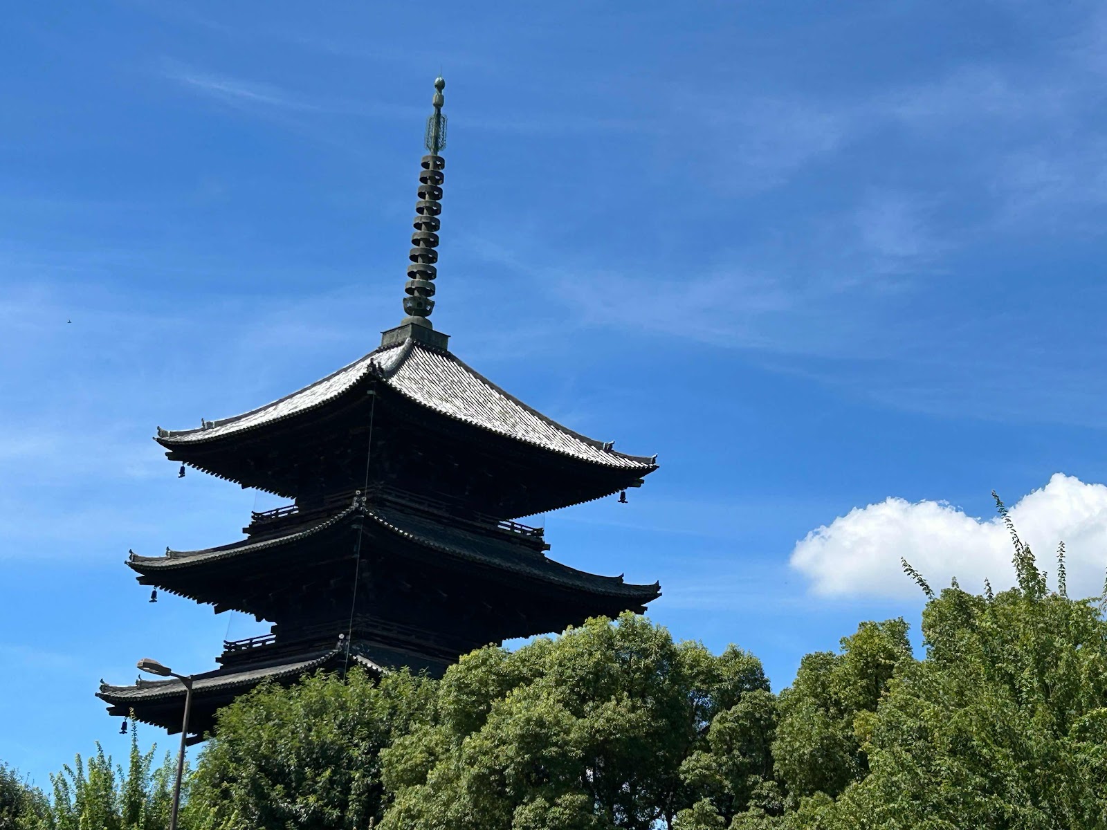 五重の塔が青い空に映えて綺麗です。